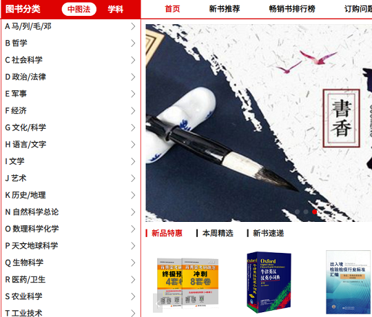 3、搜索图书。可从“图书分类、中图法、学科”、或搜索框搜索图书