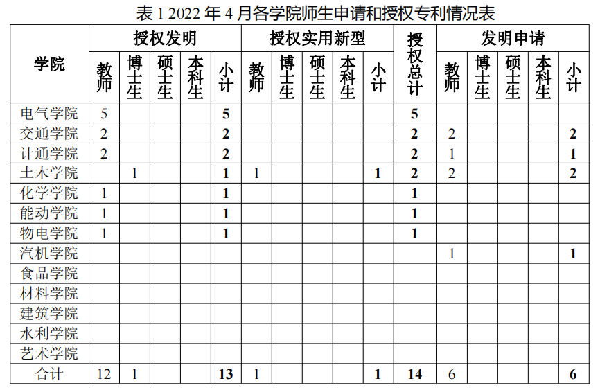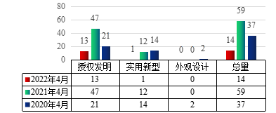 由图1和图2可见,20224月的专利申请和授权量相比往年同期均有大幅下降。经调研,因taptap点点申请的专利近两年来多次被列入非正常申请名单中,专利审查工作被暂停了一段时间,学校目前已完成自审工作,重新制定了规范的专利申请与管理工作流程。专利审查工作正在逐步恢复中,后续统计数据也将逐步恢复正常。建议引入专利申请前查新,降低非正常申请,提升专利申请质量。