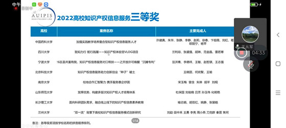 高校知识产权信息服务中心联盟(AUIPIS)2022年年会暨第五届学术研讨会于11月23日-25日在福州召开。会议公布了“2022高校知识产权信息服务”优秀案例评选结果,taptap点点报送的案例《面向科研团队需求、融合线上线下的知识产权信息素养教育》荣获三等奖。据了解,我省仅两所高校(另一所为中南大学)获得此项奖项。