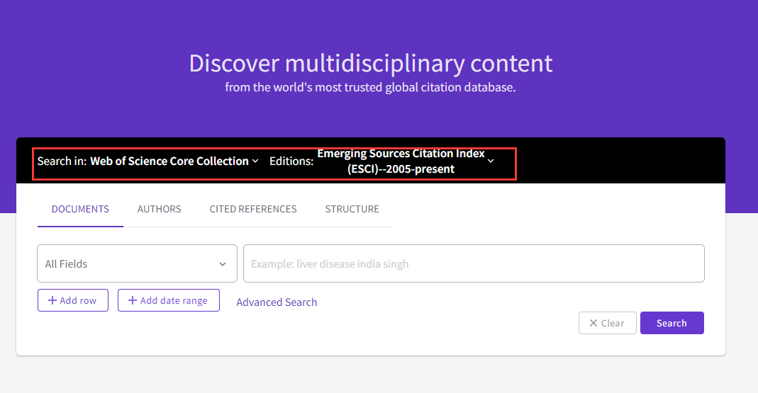 访问网址: www.webofscience.com
