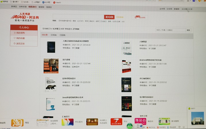 因“疫”制宜,“云端”相约,为做好今年的图书采购工作,使所购书籍更贴切读者需要,图书馆于2021年3月15日至3月19日举办了图书荐购活动,邀请广大师生参加了2021全国馆配商联盟春季线上图采会,选购自己喜欢的书籍。