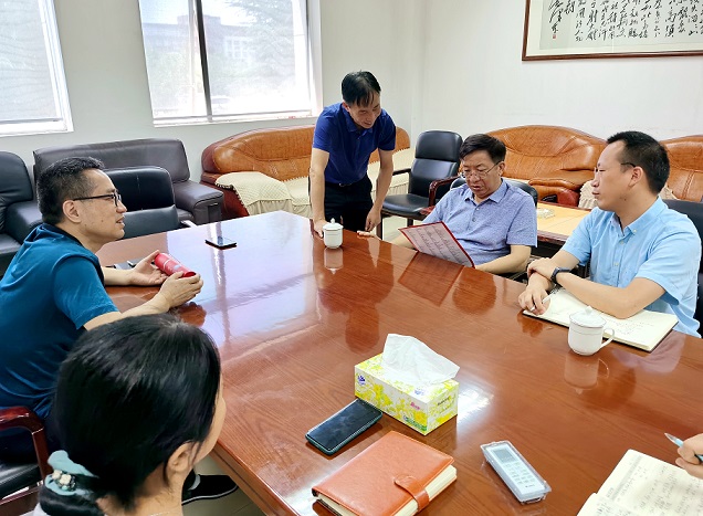 6月23日上午,学校党委书记付宏渊在政策研究与督查室主任肖寒的陪同下调研图书馆。