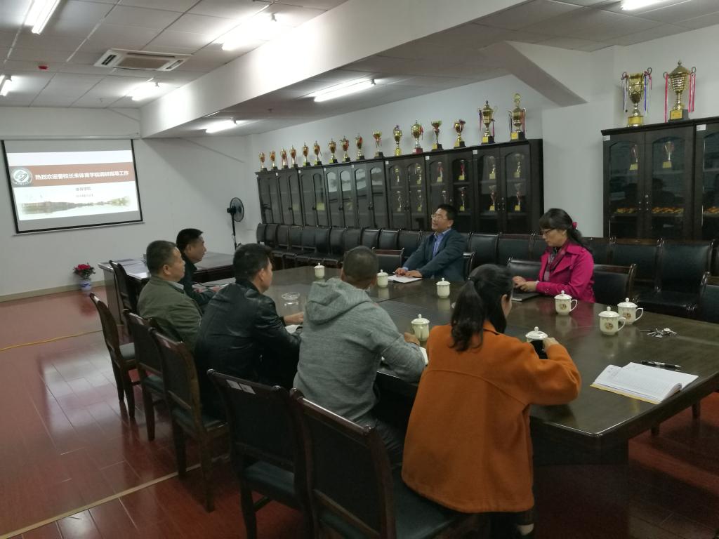 曹校长对体育学院多年来的发展建设予以了肯定,他说育人是系统工程,学生应德智体全面发展。他指出学校将大力支持体育学院发展建设,并提出了三点希望:一是明确学科建设方向,加强与校内其它人文学科的交叉与融合,不断整合研究力量,坚持特色发展,实施个性化培养,促进体育工作发展;二是强化整合校内体育资源,推进场馆配套设施建设,更好地服务于师生和社会;三是提升体育竞技能力与水平,通过高水平运动队建设造就体育竞技品牌,提升学校声誉,使之在校园体育文化建设中发挥出示范引领作用。