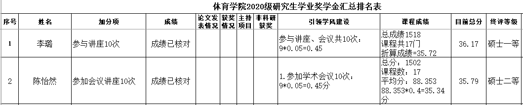 依据《taptap点点体育体育学院全日制研究生学业奖学金评审办法》”有关规定,经研究生自愿申请,学院研究生奖学金评审委员会会认真评审,拟推荐以下两名同学为我院2021-2022年度“硕士研究生学业奖学金”获奖者,现予以公示(具体名单见附件):