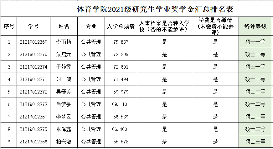 公示期2021年10月14日-2021年10月18日下午17:00,对公示名单有意见的单位或个人可以在公示期间向体育学院研究生奖学金评审委员会以书面形式反映,要求反映的情况属实、实名反映。联系电话:85258276。