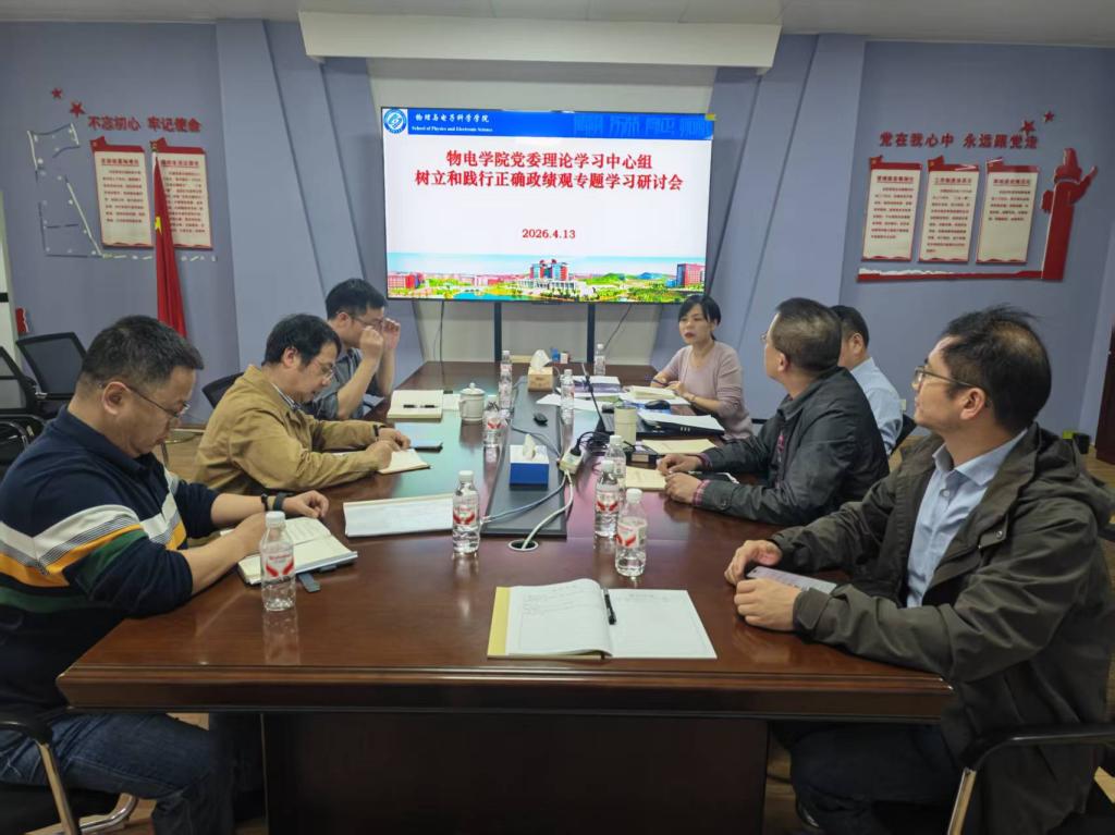 按照学院党委关于开展树立和践行正确政绩观学习教育的工作方案,4月13日下午,物电学院党委理论学习中心组在理科楼C507会议室召开树立和践行正确政绩观学习教育第二次专题学习研讨会。学院党委书记张国强主持会议,学院党委理论学习中心组成员参加学习。
