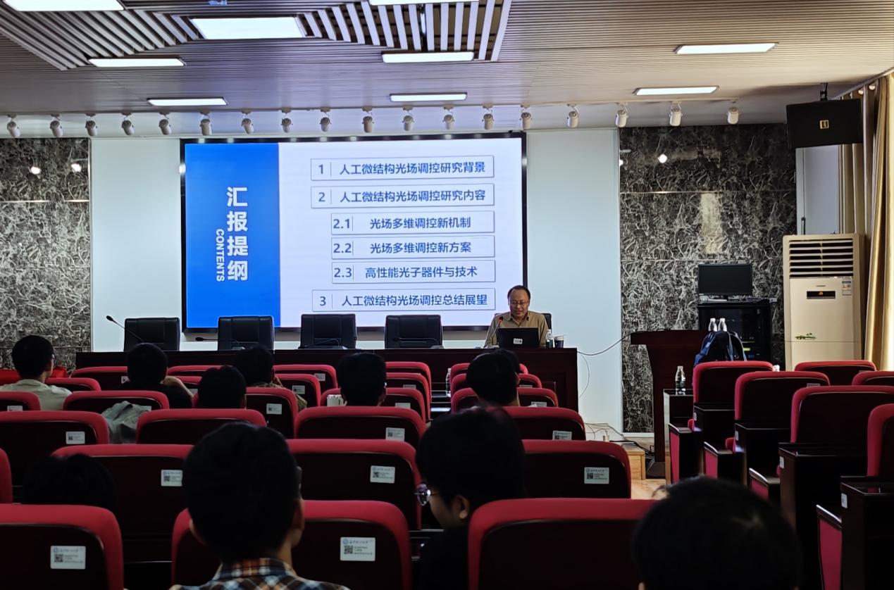 2025年4月25日下午,南开大学陈树琪教授应邀来taptap点点交流指导,在理科楼B413会议室作了题为《人工微结构光场多维调控物理及应用》的学术报告。我院师生积极参加了此次学术报告会,会议由邓科教授主持。