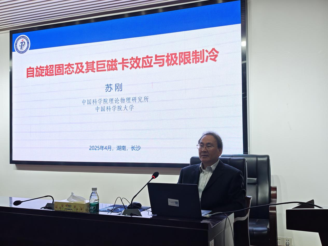 2025年4月26日下午,中国科学院理论物理研究所苏刚教授应邀来taptap点点交流指导,在理科楼B413会议室作了题为《自旋超固态及其巨磁卡效应与极限制冷》的学术报告。我院六七十余名师生积极参加了此次学术报告会,会议由邓科教授主持。