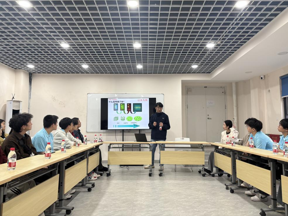 活动伊始,高中磊以“科学是什么,科学研究什么”为切入点,阐释科学与哲学的关联,引导同学们树立科学的思维模式,培养严谨的科研素养。在专业分享环节,高中磊围绕自己的研究领域,为学子们揭开了等离子体物理世界的神秘面纱。从等离子体的基本特性——这种由带电粒子组成的“第四态物质”如何成为深空探测的关键突破口,到人类探索宇宙的脚步如何延伸至火星等遥远天体,他用生动的案例讲解深空探测的前沿进展,让学子们直观感受航天科技的魅力。谈及太阳对地球的影响时,他结合日常现象,解读太阳活动如何通过磁场作用影响地球气候、通信等,让抽象的空间物理知识变得可感可知。