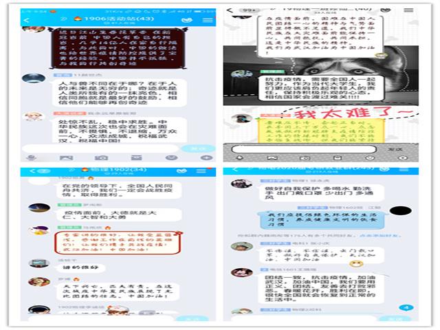 物电教师和全体学生准时在平台观看,并在班级群展开热烈的“云”讨论。大家一致认为这是一场深刻的、深情的、别开生面的思政课。物理专业19级学生吴悠说:“我们的祖国真的特别让人有安全感。十余天建成了火神山、雷神山两所定点救治新冠肺炎患者的医院;过年期间,成千上万的医护人员逆行奔赴武汉,救治病人。这就是中国行动力,中国速度,中国精神!”课程中冯秀军教授说的一句“曾经是你,今天是我”感动的许多屏幕前的同学。光电1802班郭强同学说道:“作为在新时代成长的青年,我们90后,00后当扛起前辈的大旗,在疫情防控中充当着主力军。历史的接续和传承,就是一代代使命和责任的接力。中华民族得以五千年薪火相传,绵延不息,也正是因为爱国主义已溶于每个中华儿女的血脉之中,化为我国各族人民自强不息的强大力量。”