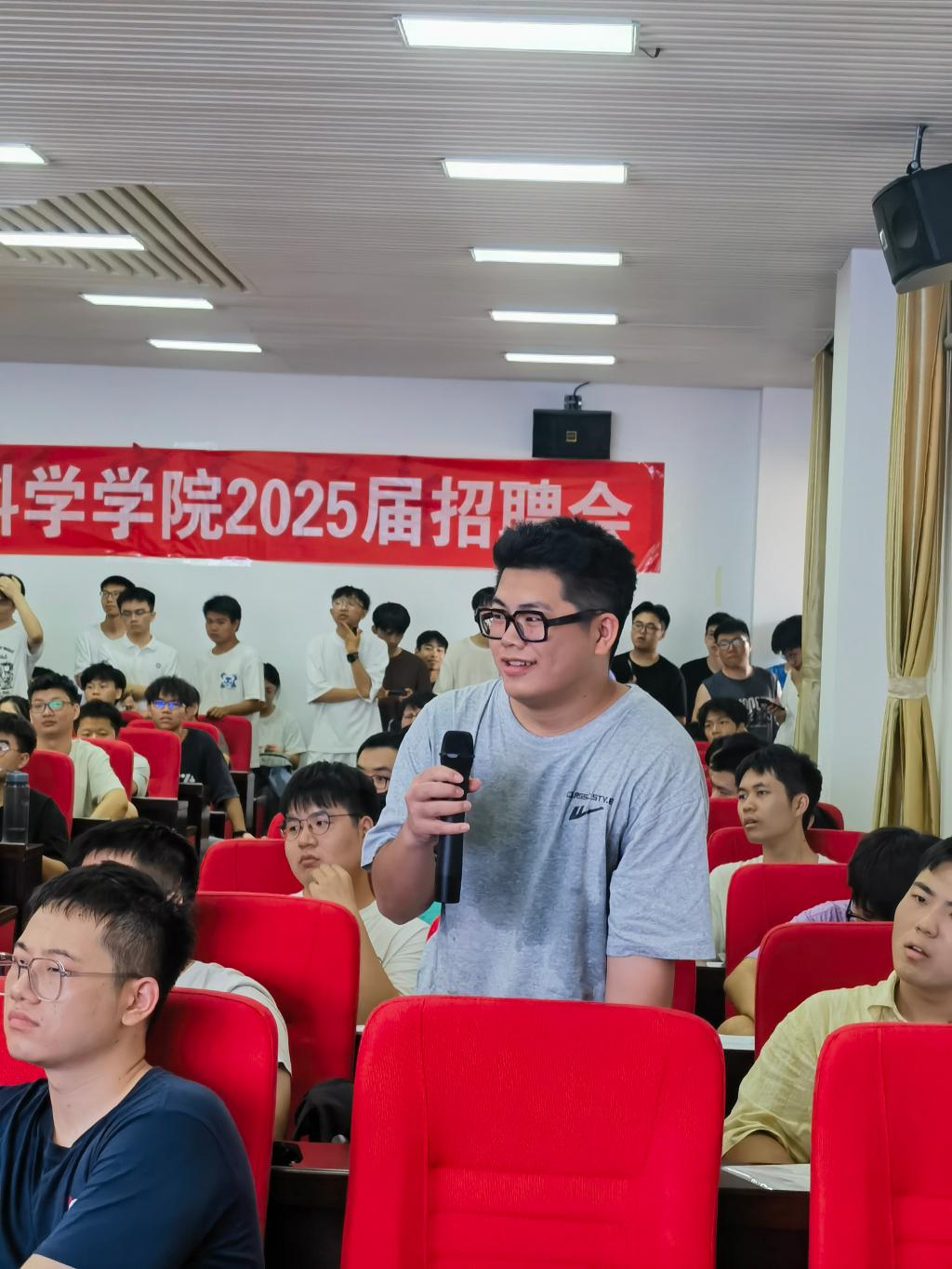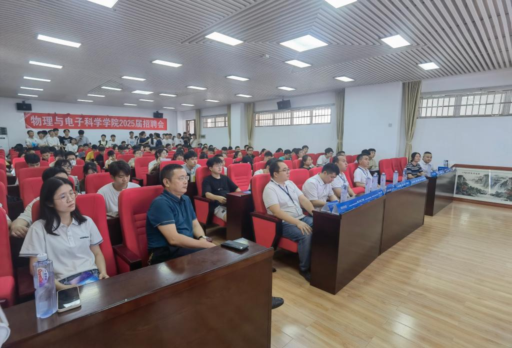 9月5日下午14:30,物电学院于理科楼b413成功举办2025届首场招聘会,本场招聘单位是华诺星空技术股份有限公司。会议由2025届就业专干赵俊程主持,学院党委书记张国强、党委副书记宋国宁、华诺星空人力资源总监穆思亲、04届学生代表熊毅、24届学生代表王帅及近200名毕业生参加了本次招聘会暨就业动员大会。