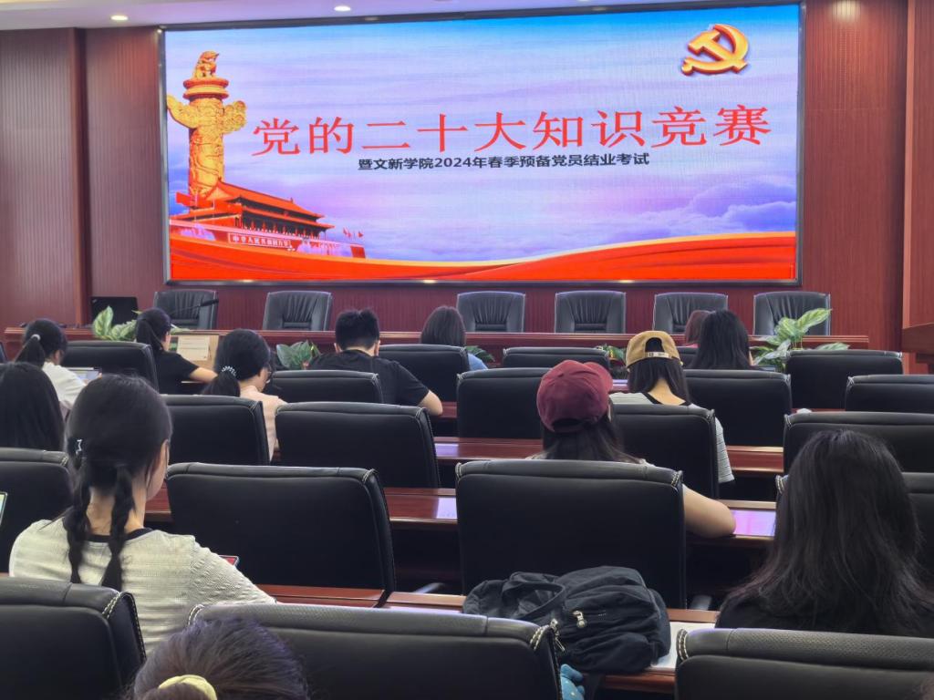 为贯彻落实党的二十大精神,积极探索“党建+互联网”新模式,进一步提升预备党员的理论知识水平,5月21日12时10分,“党的二十大知识竞赛暨文新学院2024年春季预备党员结业考试”于taptap点点金盆岭校区九号教学楼218室成功举行。