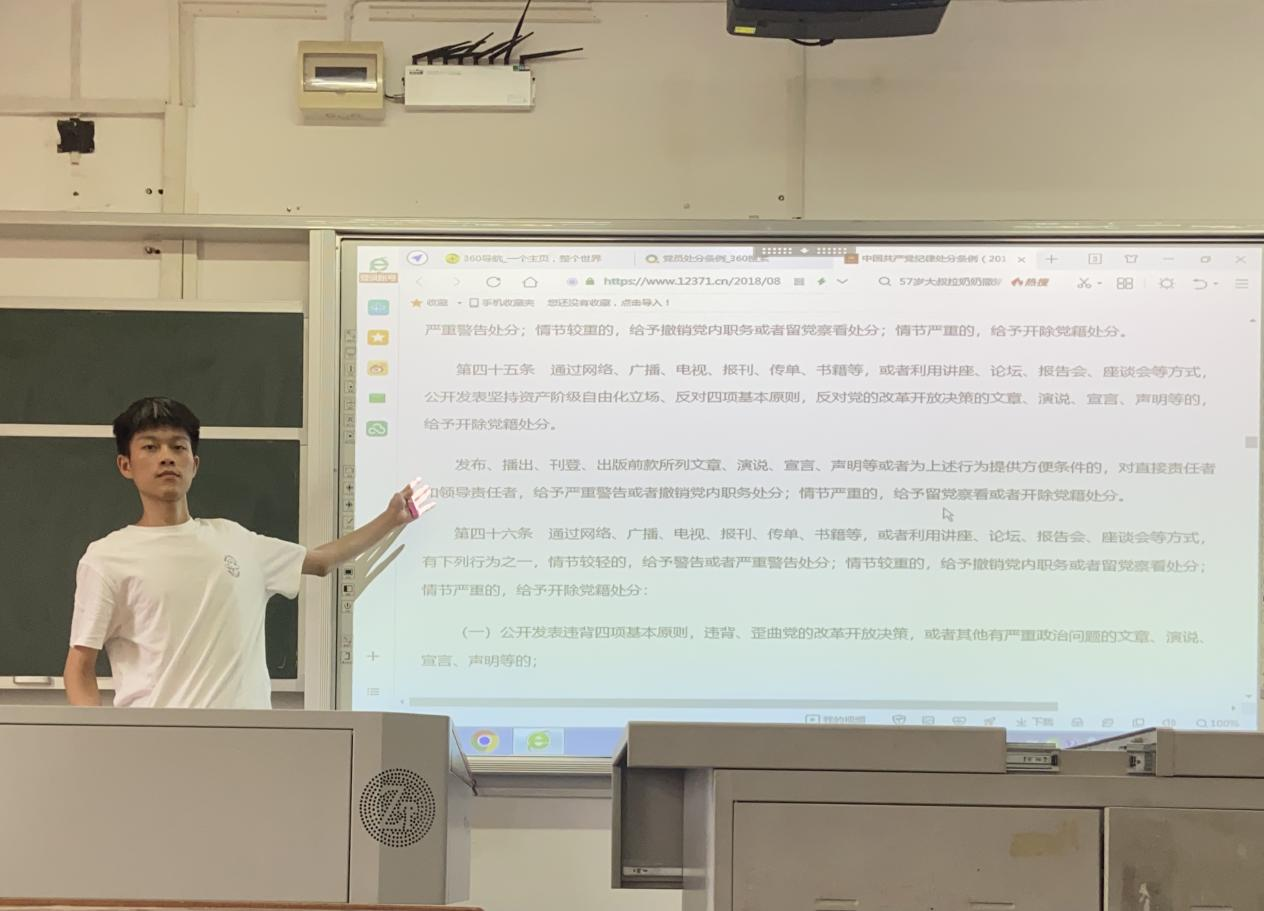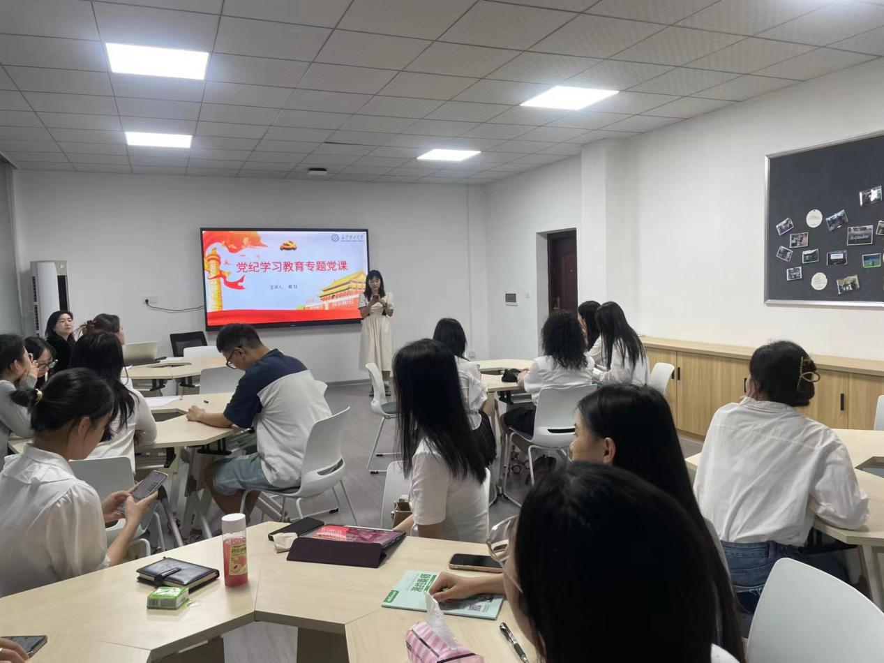 做好“一实践",作用发挥更有力。党委副书记刘莎重点讲授党纪总则第二章“违纪与纪律处分”,围绕学院党员教育管理工作就“党员纪律性”提出要求。支部同志集中学习讨论党纪第二章第五十一条、第五十八条规定。新闻学研究生党支部周怡宁同志从《中国共产党纪律处分条例》的修订历史和条例简介两方面讲解。生活纪律是党员在日常生活和社会交往中应当遵守的行为规则,设计党员个人品德、家庭美德、社会公德等各方面,关系党的形象。通过党课学习,让支部同志们更了解了为什么要做到学纪、知纪、明纪、守纪,搞清楚党的纪律规矩是什么,弄明白能干什么、不能干什么,把遵规守纪刻印在心,内化为言行准则,进一步强化纪律意识、加强自我约束、提高免疫能力。