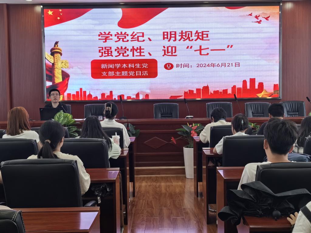 为深入推进主题教育,感悟思想伟力,严格落实“三会一课”,夯实支部“一月一课一片一实践”活动要求,2024年6月21日,文新学院各学生党支部开展以“学党纪、明规矩、强党性、迎‘七一’”为主题的6月党日活动。