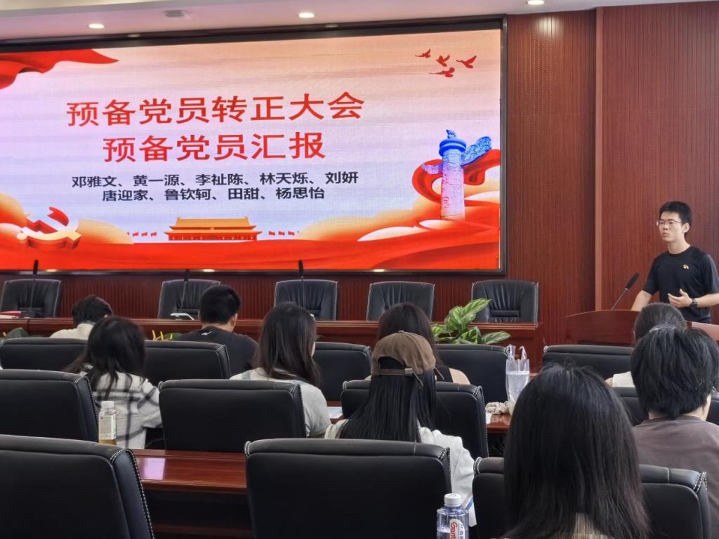 接着,各党支部的预备党员汇报自己在一年预备期内的思想、学习和工作等方面的情况,表明自己对转正的态度和今后的决心。在本次预备党员转正大会中,新闻学研究生党支部的赵冉同志表示自己认真支教,在未来会力所能及帮助更多的人。新闻学本科生党支部林天烁同志对自己成为预备党员一年来的发展历程进行了汇报,在这一年内,林天烁同志认真学习了政治理论知识,更加深刻地理解了习近平新时代中国特色社会主义思想的科学体系、精髓要义,也更深刻认识到了自身肩负的职责使命。经过各党支部的支部大会投票表决,同意推荐赵冉、段饶宇等24名同志按期转正为中共正式党员,报请学院党委审批。