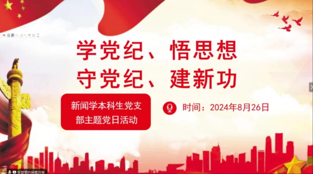 为深入推进主题教育,感悟思想伟力,严格落实“三会一课”,夯实支部“一月一课一片一实践”活动要求,2024年826-30日,文新学院各学生党支部开展以“学党纪悟思想守党纪建新功”为主题的8月党日活动。