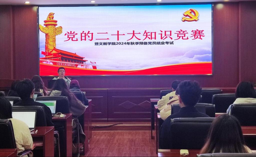为贯彻落实党的二十大精神,积极探索“党建+互联网”新模式,进一步提升预备党员的理论知识水平,11月20日12时15分,“党的二十大知识竞赛暨文新学院2024年秋季预备党员结业考试”于taptap点点金盆岭校区九号教学楼218室成功举行。