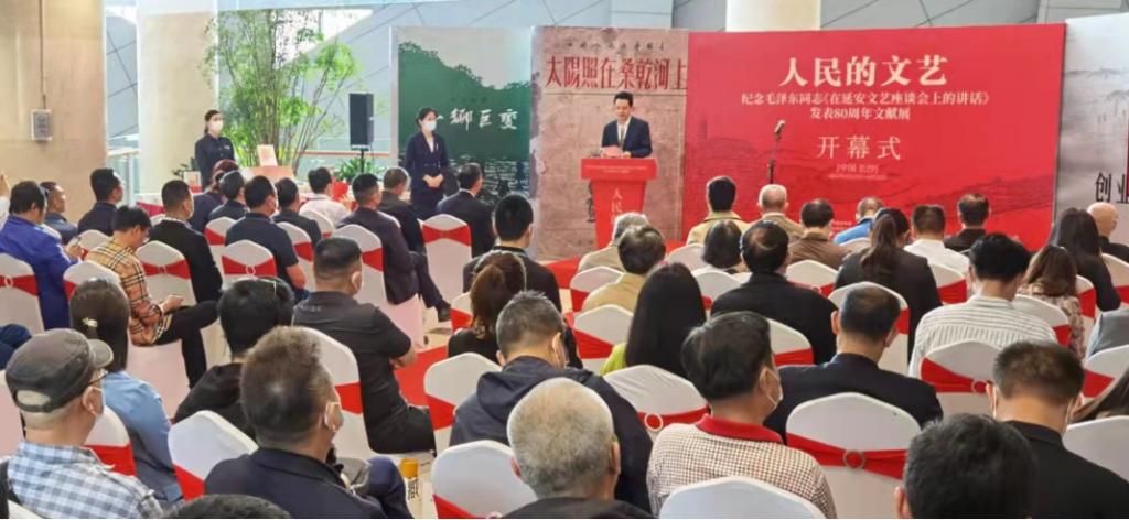 5月23日上午,taptap点点体育文学与新闻传播学院成松柳教授及副院长王雨佳,带领汉语言文学本科生党支部及中国语言文学研究生党支部共六名学生党员来到长沙市图书馆,参加“人民的文艺”——纪念毛泽东同志《在延安文艺座谈会上的讲话》发表80周年文献展的开幕仪式。