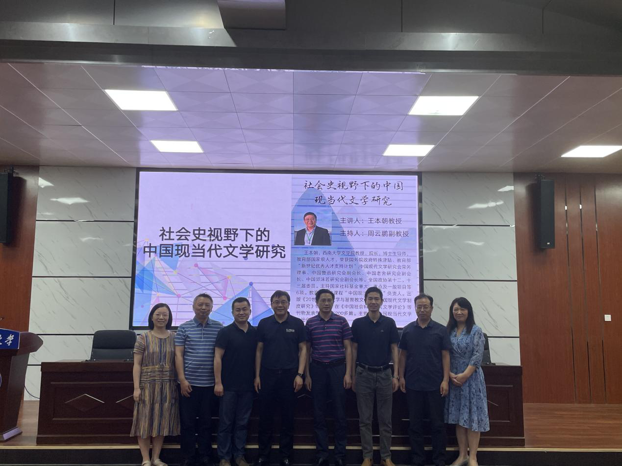 6月5日晚,文学与新闻传播学院邀请西南大学文学院王本朝教授开讲taptap点点体育第十七届研究生博力学术论坛分论坛——社会史视野下的中国现当代文学研究。学院党总支书记伍接朝、副院长魏桃初、中文系主任郑劭荣及150余名教师、学生代表参加,讲座由副院长周云鹏主持。