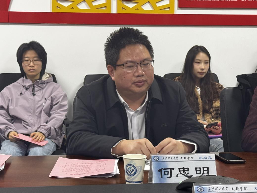 研究生院院长何忠明教授致欢迎辞,他对专家组一行来到学院进行评估指导表示欢迎和感谢并对学位点情况作简单介绍。