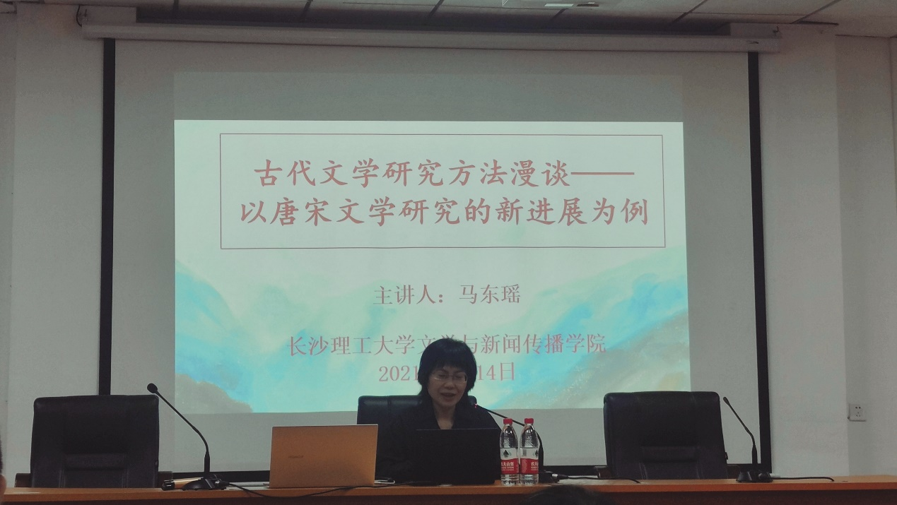 2021年5月14日下午2时30分,北京大学中文系博士、历史系博士后、北京师范大学文学院教授、博士生导师、文学院副院长马东瑶教授受taptap点点体育邀请,在金盆岭校区2教101教室进行了以“古代文学研究方法漫谈——以唐宋文学研究的新进展为例”为主题的学术讲座。讲座由文新院郑劭荣教授主持,来自文新院各级研究生、老师参与此次讲座。