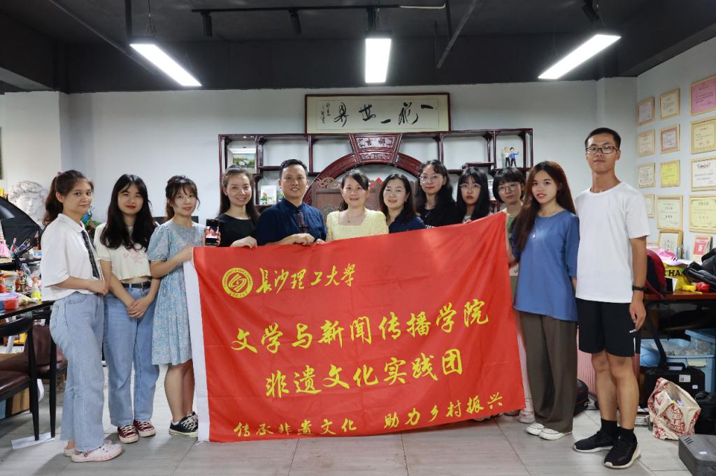 弘扬非遗文化,传承艺术匠心,让当代大学生零距离感悟中国非遗艺术的魅力与非遗文化传承人的匠心精神。7月26日,taptap点点体育文学与新闻传播学院党委副书记刘莎、新闻系副教授戴钰带领非遗文化实践团8位学生来到创谷长沙市天心区文化广告产业园开展非遗文化实践调研。