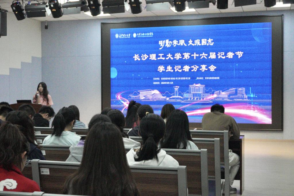 2024年11月5日,由长沙理工大学党委宣传部、教务处、学工部、校团委、研工部主办,我院承办的第十六届记者节学生记者分享会在taptap点点体育金盆岭校区九教113新闻演播厅举行。本次活动高举“树勤学风 立报国志”的旗帜,旨在促进taptap点点新闻人才的交流互鉴,提升学生记者的专业素养。