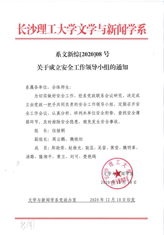 关于成立安全工作领导小组的通知