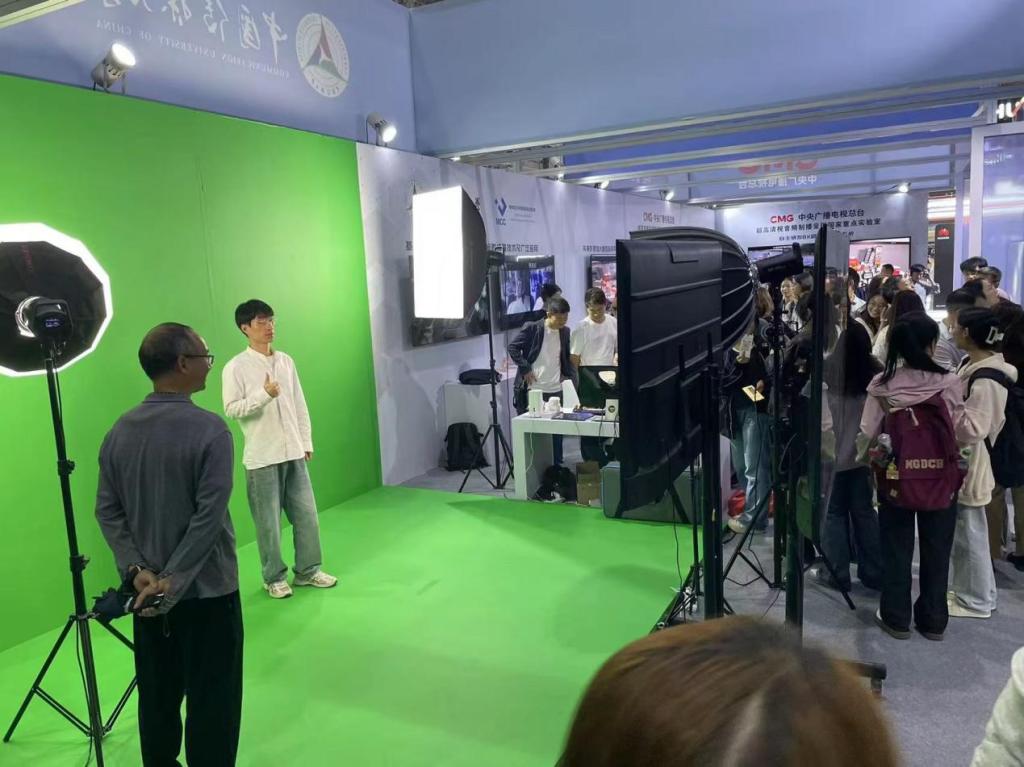 到场的师生们积极参观各类主题展区,仔细了解大数据监控灾害、节目现场灯光控制设备以及动作捕捉仪器等设施,亲身体验AI虚拟背景摄影,VR剧本杀等技术成果。通过现场展示和互动体验,深入了解人工智能、数字文化和音视频技术的最新进展。在人工智能赋能媒体融合的应用场景展示中,师生们对新技术在新闻生产和传播中的实际运用纷纷发出赞叹,深刻体会到传统媒体在科技推动下焕发的新生机。