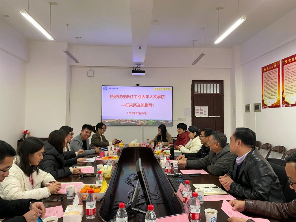 12月10日下午,浙江工业大学人文学院党委副书记陈央一行6人来文新系参观交流。系党总支书记伍接朝,系副主任周云鹏、魏桃初和全体学生辅导员与来访的同仁进行了交流座谈。座谈会由伍接朝主持。