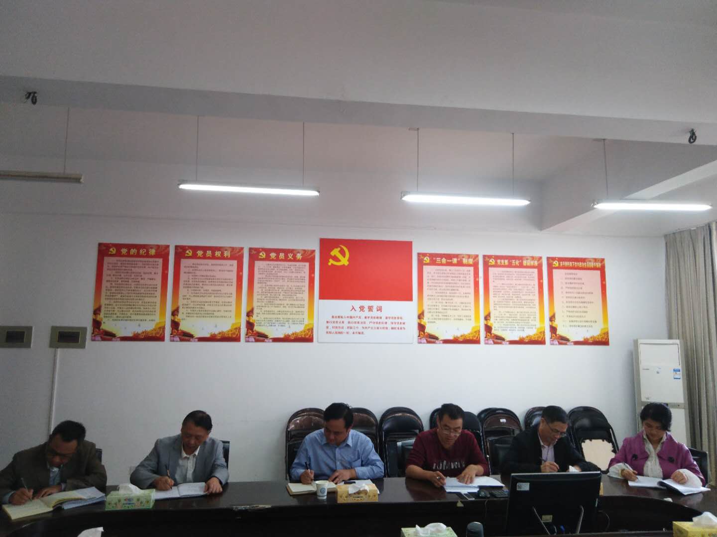 10月12日下午,文新系党总支召开2020年第5次理论学习中心组学习会议,专题学习《关于加强党的政治建设的意见》。系党总支理论学习中心组全体成员参加,系党总支书记伍接朝主持学习会议。