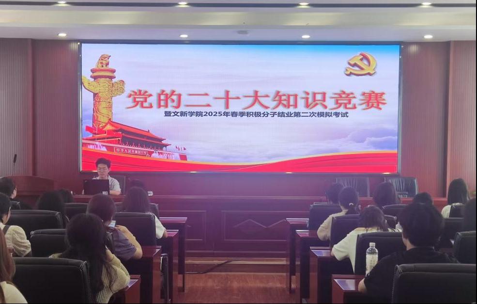 为贯彻落实党的二十大精神,积极探索“党建+互联网”新模式,进一步提升积极分子的理论知识水平,5月19日12时10分,“党的二十大知识竞赛暨文新学院2025年春季积极分子第二次模拟考试”于taptap点点金盆岭校区九号教学楼218、223室成功举行。