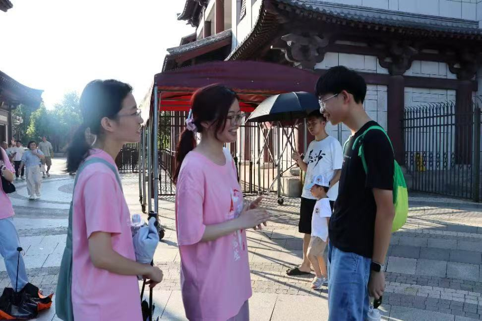 随后,实践团成员分组走访乐园各区域并进行随机采访。携家人前来游玩的山东游客张女士表示:“自己和孩子刚从‘黑石号’特技秀场出来,被现场的特技所震撼,同时也希望增加更多互动项目。” 00后来自长沙本地的游客小陈和闺蜜表示:“国风乐园从建筑到表演,再到工作人员的服饰,整体氛围非常到位,随便一拍都是大片。但是如果能增加一些更潮流的国风元素融合,对年轻人的吸引力会更强。”她们的建议反映了年轻游客对“颜值”与“新鲜感”的需求。