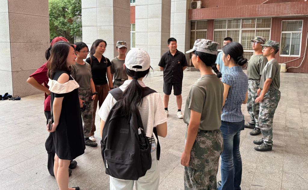 7月12日,文学与新闻传播学院党委副书记刘莎、2024级辅导员项永生及部分民兵连老队员一行前往taptap点点体育云塘校区工科三号楼,看望并慰问正在参加暑期集训的文新学院民兵连同学。