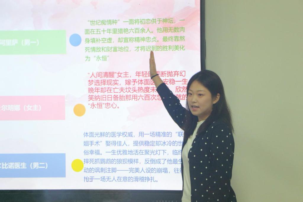 在互动环节中,辛悦围绕作品内容设置问答,引导观众表达对马尔克斯爱情观的个人理解。有同学提出“霍乱与爱情有何关联”的疑问,黄宇老师巧妙应答:“一方面,故事以霍乱时期为背景;另一方面,爱情本身就如一场霍乱,突如其来、无法控制,既带来痛苦又带来重生。”周云鹏老师进一步补充,提醒大家在阅读西方文学作品时应尽量避免以东方文化视角进行单一化解读,而应深入理解其文化语境。现场讨论热烈,同学们一致认为,《霍乱时期的爱情》对当代大学生的价值在于:打破对“完美爱情”的单一想象,理解爱的复杂与坚韧,并学会在孤独中成长,在追求理想的过程中完成自我的塑造与升华。