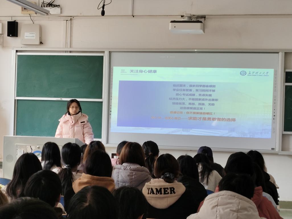 此外,针对临近期末部分同学出现的学业压力、心理焦虑等问题,各班向同学们积极推介学校心理健康支持渠道,包括寒假心理热线、“湘听热线”及“长理心部落”微信公众号服务。对于经济上存在特殊困难的同学,各班详细说明了特困补助的具体申请路径与操作流程,确保有需要的同学能够及时获得帮助。最后,各班班主任结合班级实际情况进一步提醒同学们诚信应考、合理规划复习时间。班主任嘱咐同学们寒假期间要保持通讯畅通,切实增强安全意识,防范各类潜在风险,以健康的身心状态和良好的安全习惯,迎接寒假的到来与新学期的启航。