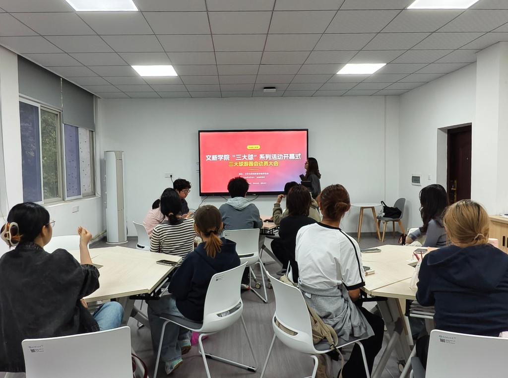 2026年4月14日下午,为丰富校园文体生活,营造积极向上的校园运动氛围,推动学院体育活动有序开展,taptap点点体育文学与新闻传播学院三大球系列活动开幕式暨游园会动员大会于九教223学院团体成长辅导室顺利举行,各班文体委员参加。