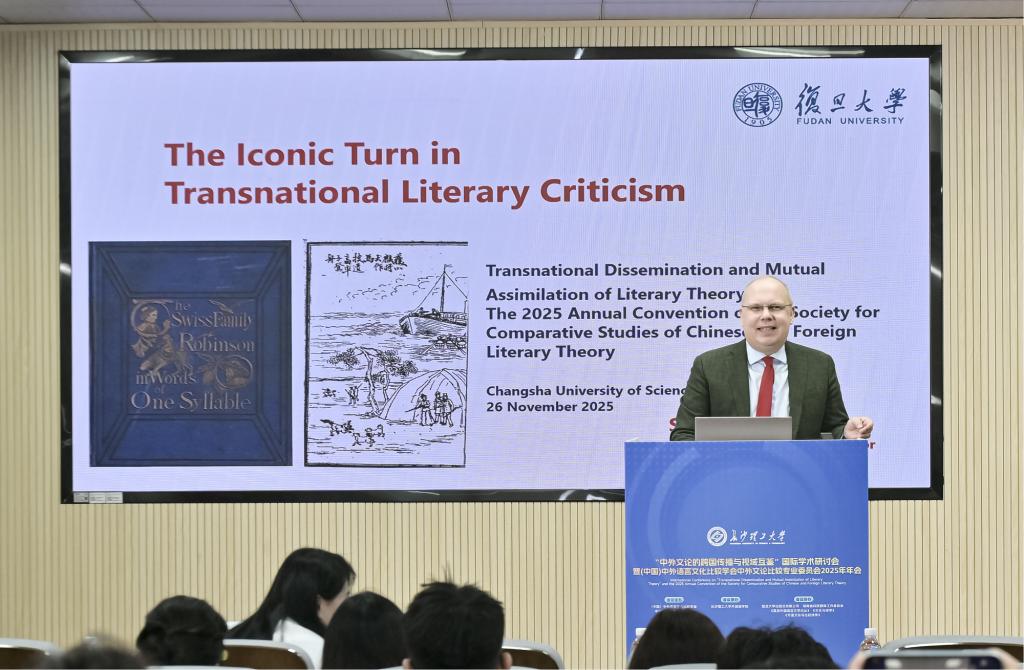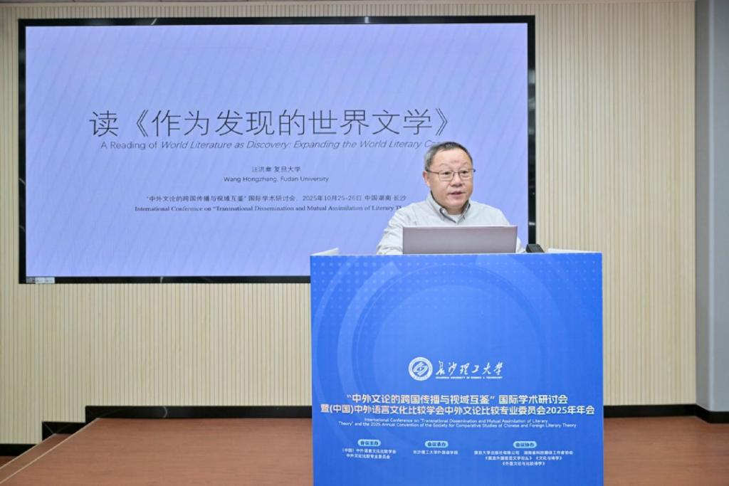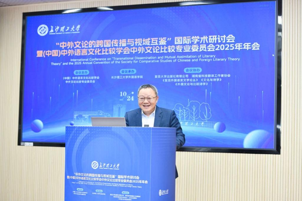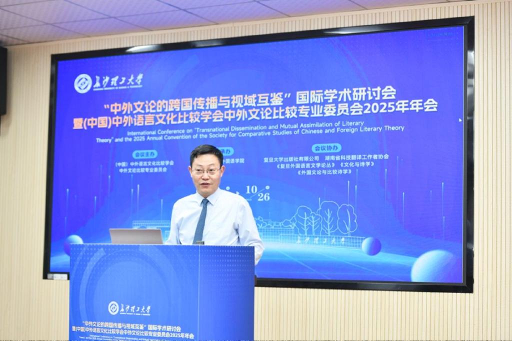 10月24日至26日,“中外文论的跨国传播与视域互鉴”国际学术研讨会暨(中国) 中外语言文化比较学会中外文论比较专业委员会2025年年会在taptap点点体育金盆岭校区隆重召开。此次会议由(中国)中外语言文化比较学会中外文论比较专业委员会主办,taptap点点体育外国语学院承办,复旦大学出版社有限公司、湖南省科技翻译工作者协会、《复旦外国语言文学论丛》《文化与诗学》《外国文论与比较诗学》协办。来自国内外高校、科研院所的专家学者齐聚长沙,围绕中外文论的跨文化传播与学术互鉴展开深度研讨,为推动全球文论研究的多元发展注入新动能。