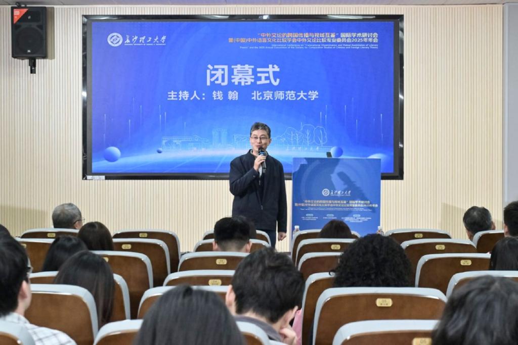 10月26日12时许,会议在闭幕式中落下帷幕。(中国)中外语言文化比较学会中外文论比较专业委员副会长钱翰教授致闭幕辞。他高度赞扬本次会议亮点突出、富有创新,一方面国际化程度较高,另一方面增设了学生论文评选;他表示评选活动是对同学们学术努力的鼓励,坚信年轻人是未来学术发展的核心力量,期待同学们在学术道路上持续进步、再创佳绩。他深情感谢各分论坛点评专家的辛勤付出,以及组委会和志愿者的周密筹备,期待本次会议的学术影响能随各位学者传递至全国乃至世界。