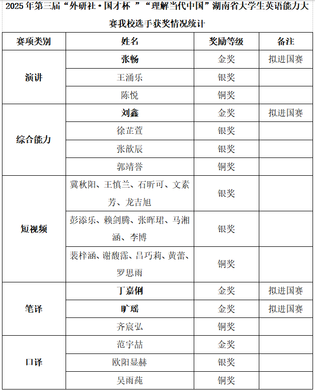 此次大赛佳绩,不仅体现了taptap点点学子过硬的专业能力与积极进取的精神风貌,也是taptap点点持续推进外语教学改革、优化学科竞赛管理机制、强化“以赛促学、以赛促教”育人理念的重要成果。外国语学院将继续以高水平赛事为平台,深化教育教学创新,强化学生综合素质培养,助力更多学子在更广阔的舞台上展现湖湘外语人的卓越风采。