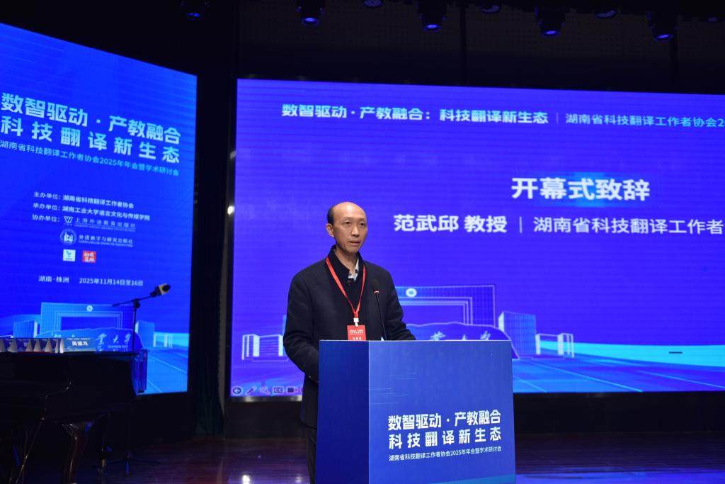 20251114日至16日,由湖南省科技翻译工作者协会主办、湖南工业大学承办的湖南省科技翻译工作者协会2025年学术年会暨数智驱动·产教融合:科技翻译新生态学术研讨会在湖南工业大学成功举办。