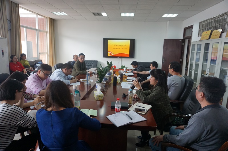 4月10日下午,学院在文科楼A区-603会议室召开全院干部培训会,院班子成员、院党委委员、系(部)正副主任、各教工党支部书记、院行政各办公室主任参加了会议,会议由院长段胜峰主持。