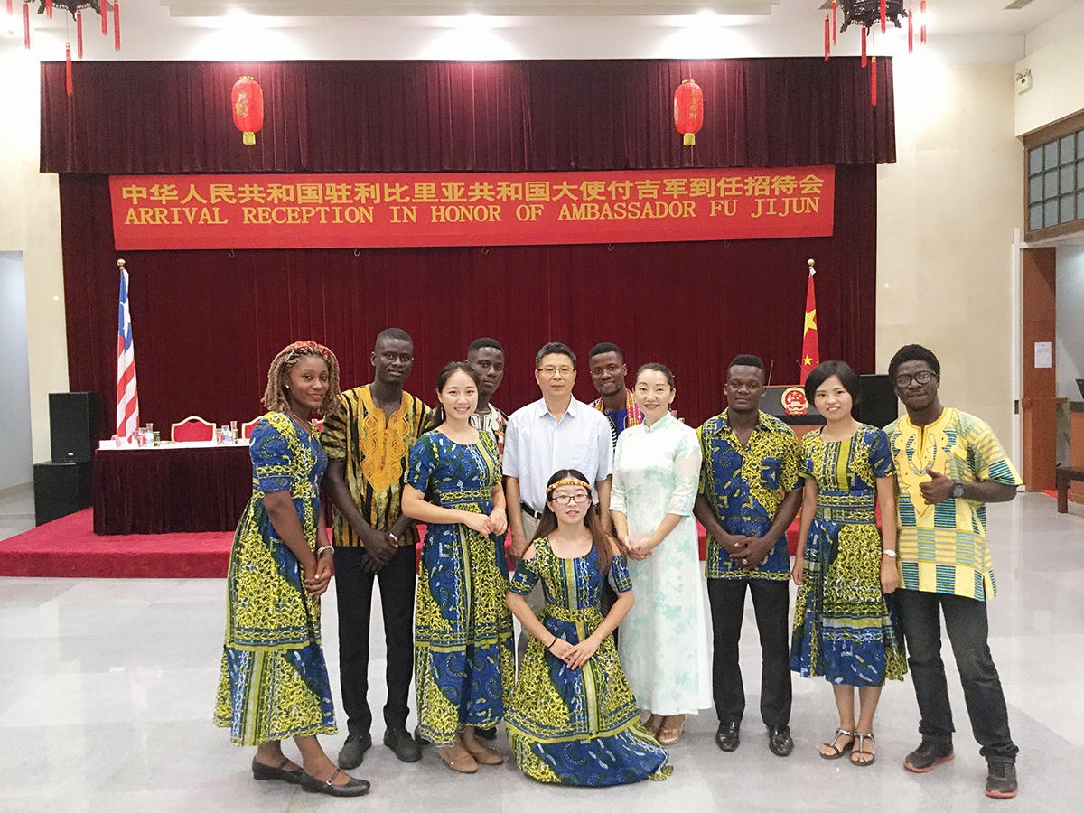 当地时间 4月 10日晚上8点,中华人民共和国驻利比里亚共和国特命全权大使付吉军到任招待会于中国驻利使馆举行。利现任副总统泰勒,议长钱伯斯,前副总统博阿凯,利各部委政要,各国驻利外交使节,利媒体以及中资机构代表,华人华侨和使馆外交官等三百余人出席。利比里亚大学副校长艾伦博士(Dr.Alan),利比里亚大学孔子学院教师代表应邀出席招待会。利大孔院的志愿者教师和学生们在招待会上表演非洲舞蹈,演出大获赞誉。