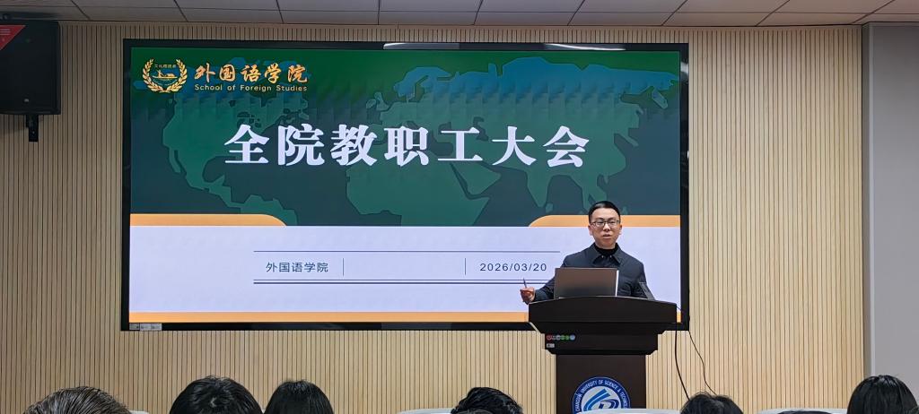 3月20日,外国语学院在321会议室召开全体教职工大会,会议由学院党委书记陈仁凯主持。