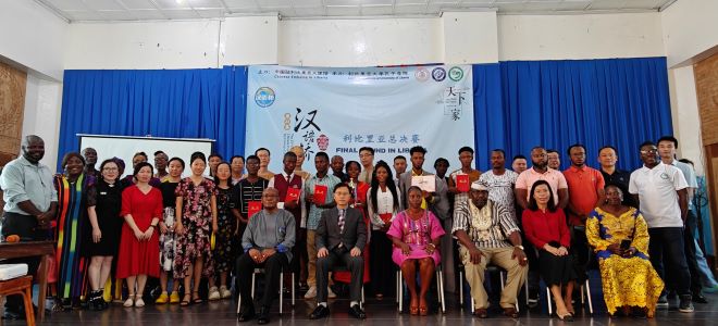 2024年5月17日,利比里亚大学孔子学院在利大国会山校区隆重举办了第23届“汉语桥”世界大学生中文比赛预选赛利比里亚赛区总决赛。中国驻利大使尹承武阁下、利比里亚教育部助理部长Nyensuah女士、利比里亚广播电台台长Faghon先生、利比里亚大学代理校长Taylor教授、中资企业和机构代表以及利大孔院师生近300人参与活动。部分孔院教学点学生和武术课堂的学员进行了暖场表演。利国多家主流电视、广播及网络媒体对此次活动进行了现场直播和新闻报道。