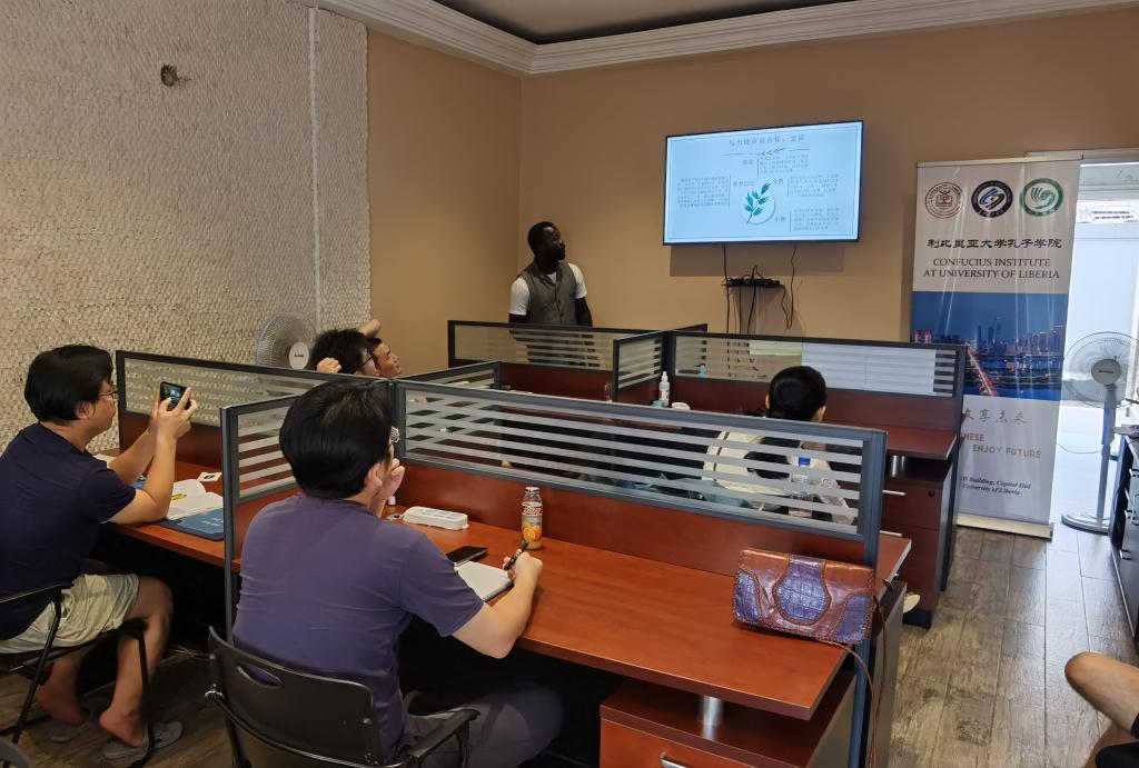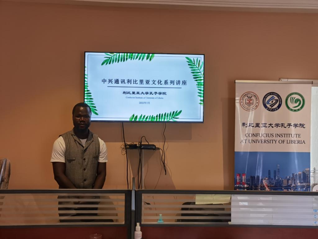 为助力中资企业减少中利交流障碍,帮助中资企业员工更好地了解利比里亚语言与文化,当地时间72日,利比里亚大学孔子学院中方院长周红专携教师代表来到中兴通讯利比里亚代表处,为该公司员工举办了首场利比里亚文化专题系列讲座。中兴通讯利比里亚代表处李刚球经理、刘兴旺经理及代表处多位技术专家听取了讲座。大家纷纷表示获益匪浅。