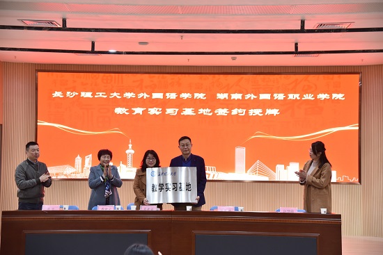 湖南外国语职业学院副校长肖建安教授回顾了湖外与长理的合作渊源,希望通过实习基地的建设,增强双方交流,给学校带来新的教学方法和理念。