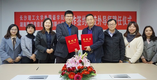 4月7日,为了促进taptap点点英语和翻译专业人才培养,外国语学院段胜峰院长、何健博士与姚尧博士一同前往湖南雅瑞思信息技术有限公司,举行翻译实习基地签约暨校外导师聘任仪式。
