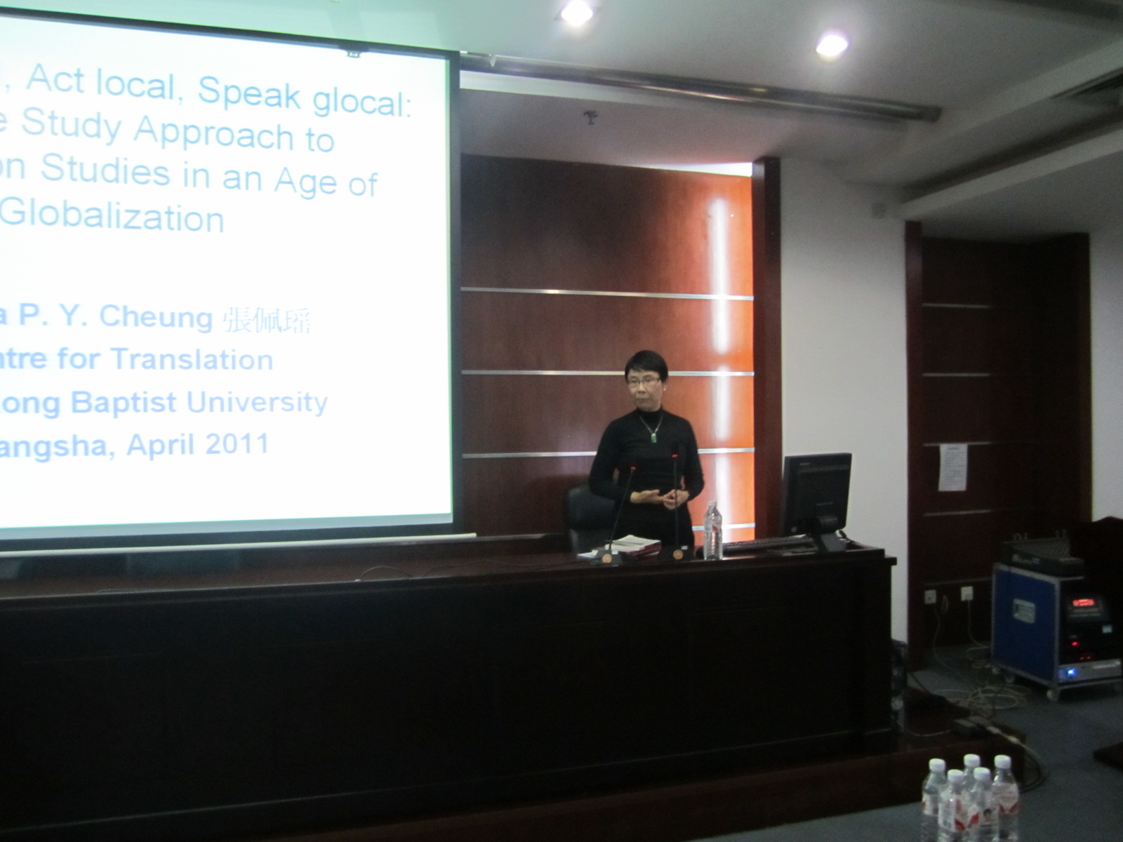 2011年4月14日下午三点半,在云塘校区图书馆报告厅B-102,应我院邀请,香港浸会大学张佩瑶教授做了题为“Think Global, Act Local, Speak Glocal: A Case Study Approach to Translation Studies in an Age of Globalization”的讲座。张佩瑶教授为香港浸会大学协理副校长、翻译中心主任、博士生导师。张教授此次讲学是“taptap点点体育外国语言文学海外名家系列讲坛”的第二位邀请专家。讲座由外语学院院长潘卫民教授主持。