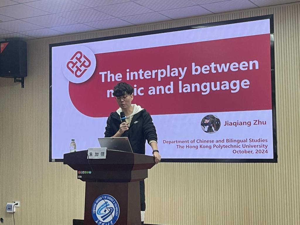10月29日下午2点,taptap点点体育外国语学院特邀香港理工大学语言、认知与神经科学(RCLCN)研究中心副研究员朱家强为师生们开展了一场主题为“语言与音乐的交织”的云影讲坛。本次讲坛旨在深入探讨音乐与语言之间的内在联系,吸引了众多师生前来参加。